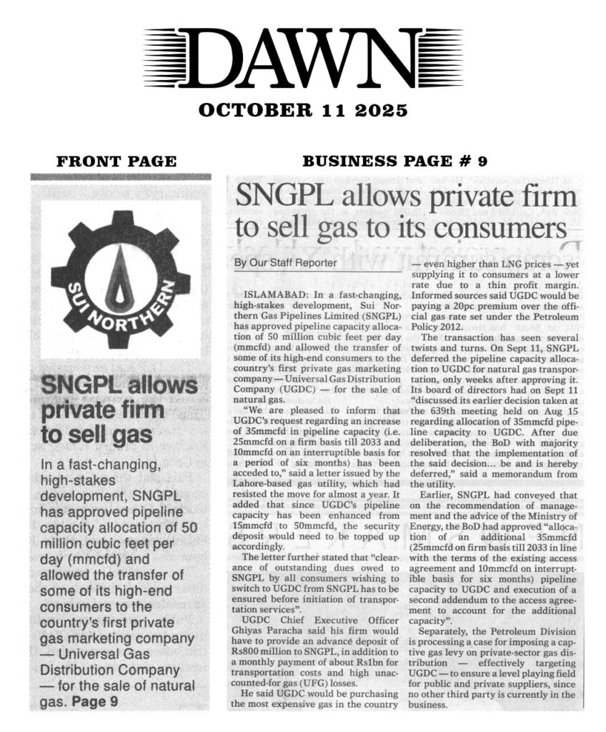 Universal Gas Distribution Company (UGDC) has achieved a landmark milestone with approval of 50 MMCFD of Natural Gas Supply Capacity to industrial consumers through SNGPL’s existing pipeline network. This marks a historic step in Pakistan’s journey towards a more open and competitive energy market, as UGDC becomes the first private Natural Gas Distribution Company to […]